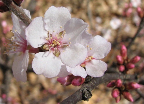 * These are not cherry trees, but Nanking cherry bushes. Great small, tart cherries that we eat right off the bush as we walk by. They do line up in bloom time with the National Cherry Blossom bloom period so they should all be in peak bloom within the next week.